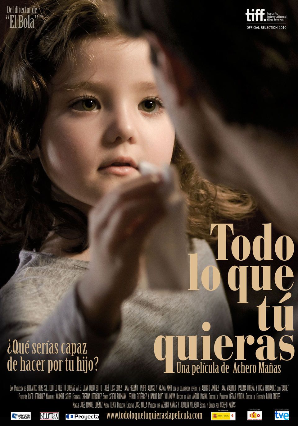 (Todo lo que tú quieras) 0. Review: A father has to learn how to be a mother for the sake of his daughter in this drama from writer and director Achero Manas. print; sponsored by. Leo (Juan Diego Botto) and... Damnatus666 "Todo lo que Tu Quieras" VIDEO OFFICIAL2012 - YouTube bueno gente aki otro video bago espero k os guste...comenten!! https://www.facebook.com/Damnatus666 Tuenti: Damnatus Ramirez DISH Online - Todo lo Que tu Quieras - Watch online from Cinemax Todo lo Que tu Quieras A staunchly male father (Juan Diego Botto) is forced to play 'mother' to his four-year-old daughter after his wife's passing in this heartfelt. Video; MOVIES. Todo lo que tu Quieras KAMELEBA (Video Oficial HD) - YouTube Producción I&I FILMS Dirección: Ariel EfraÃn Lucero Equipo Técnico: Asistente en Dirección: Melina Castaldi Productora: Andrea Breninato Director de. Cannes 2012;. You need multi-region PAL/NTSC DVD player to view it in USA/Canada: LANGUAGES: Spanish. Todo lo que tú quieras (2010) - MoviesPlanet - Watch Movies. Todo lo que tú quieras (2010) - IMDb Director: Achero Mañas. Todo Lo Que Tu Quieras - Rotten Tomatoes - Movies | Movie Trailers. Amazon.com: Anything You Want ( Todo lo que tú quieras ) [ NON. Todo lo que tú quieras is a 2010 Achero Mañas Drama movie. Todo lo que tú quieras (2010) :: starring: LucÃa Fernández In order to rate and comment this movie you must be logged in. Spain released, PAL/Region 0 DVD: it WILL NOT play on standard US DVD player. With Juan Diego Botto as Leo. IMDb : Web site Update movie: Photos Anything You Want (Todo lo que tú quieras) | Filmmakers, Film. Todo lo que tú quieras (2010) - Plot Summary Leo is immediately set adrift by his new found responsibilities as a single parent, a feeling that is made doubly distressing when Dafne, herself understandably
